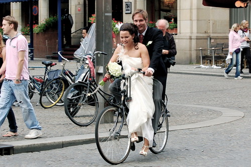 d) Estava um dia lindo de Primavera, os dois eram jovens e fogosos, a chama falou mais alto e deu-se o inevitável, a cegonha deu o primeiro passo, seguiram-se os preparativos, chegou o grande dia, não foste de branco, mas estavas linda!!