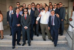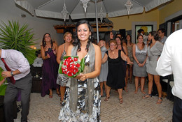 Terminada a cerimónia, choveram pétalas de flores, no meu tempo eram punhados de arroz...bom, mas ainda bem que não seguiram a tradição da Jordânia, chocolates e rebuçados, senão imaginem os noivos a levar com aqueles drops de fruta que são rijos como o caneco..toing...uiii...aiii...pois, não era boa ideia, depois as fotos denunciariam o relevo dos galos e não ficariam tão bonitas quanto estas...loll..!!