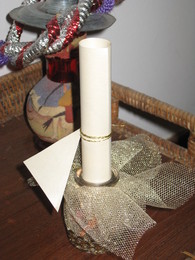 A tempestade passou, o convite chegou, um rolinho de papel perfumado, atado com fio de prumo, uma base de vidro enfeitada com tule dourado, uma criação deles, um pedaçinho da felicidade que viviam, estampada ali...bem na minha frente, um sonho tornado realidade, um concretizar de desejos, o tempo a voar, a data a chegar, os preparativos, a festa surpresa, os tantos amigos, a nossa família, estava radiante e só tinha olhos para eles, tão felizes e tão pertinho de mim!!... era só isso que queria sentir!!...
