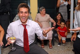 Hoje em dia está tudo muito mais informatizado e tecnologicamente mais avançado, este casamento sequer teve direito à luzinha pensadora foi sonhado, preparado e realizado talvez com 15 dias de pré-aviso (new timings), a minha irmã (mãe do noivo) até ficou assim ás bolinhas amarelas, esquisito, nunca tinha visto nada assim, deve ser uma nova espécie de urticária, terá comido milho??...Bom, aqui o que interessa salientar foi a entrega dela, o amor com que o fez e a felicidade que proporcionou aos noivos, fazendo deste dia um sonho à velocidade da luz, tornado realidade!!...Foi vivido em pleno, recheado de emoção, coberto de surpresas, barrado com alegria, bagos de certezas, desenhado com amor e alimentado pelo romantismo que os acompanhou sempre!!..