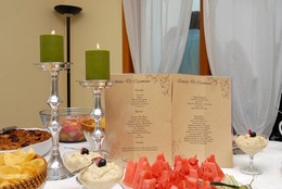 Ora, agora é que vão começar a aquecer os motores, o relógio já tocou as seis badaladas, aromas e fragâncias já salivam à volta das mesas, o menu convida e alicia a uma degustação sem limites. Destaco, as responsáveis pelo catering, as magníficas "TLG" solo una parola: perfetto!!...excelente trabalho, quer a decoração, quer o serviço, os timings, qualidade e quantidade dos pratos e buffets. Foram incansáveis e conseguiram realizar o dia perfeito. Não me canso de elogiar estas famosas...