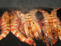 Ontem, no seu lixo... O quê? Me enganei, ou eram cascas de camarão? Acertou. Comprei uns camarões graúdos e descasquei. Eu adoro camarão. Descasquei, mas ainda não comi. Quem sabe a gente pode... Jantar juntos?