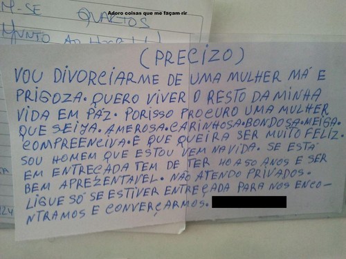 Oh...foi o destino, ele procura exactamente uma mulher como eu, amorosa, carinhosa, bondosa, meiga, compreensiva e que queira ser feliz. É tudo o que quero, meu príncipe. Sois Rei. Estou sem palavras..., ainda por cima, preencho os requisitos todos, sortuda. Apenas consigo dizer que não resisti a partilhar convosco a minha sorte, foi o acaso que nos juntou, qualquer coisa me empurrou para a zona de anúncios daquele espaço comercial, até porque eu nem sou destas coisas, de anúncios e blá...blá..., aliás vocês conhecem-me bem, ...e de repente...